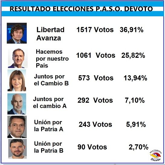 En el final de la jornada de este domingo, se conocieron los resultados finales de las Elecciones PASO 2023 de la localidad de Devoto y Las Varillas.