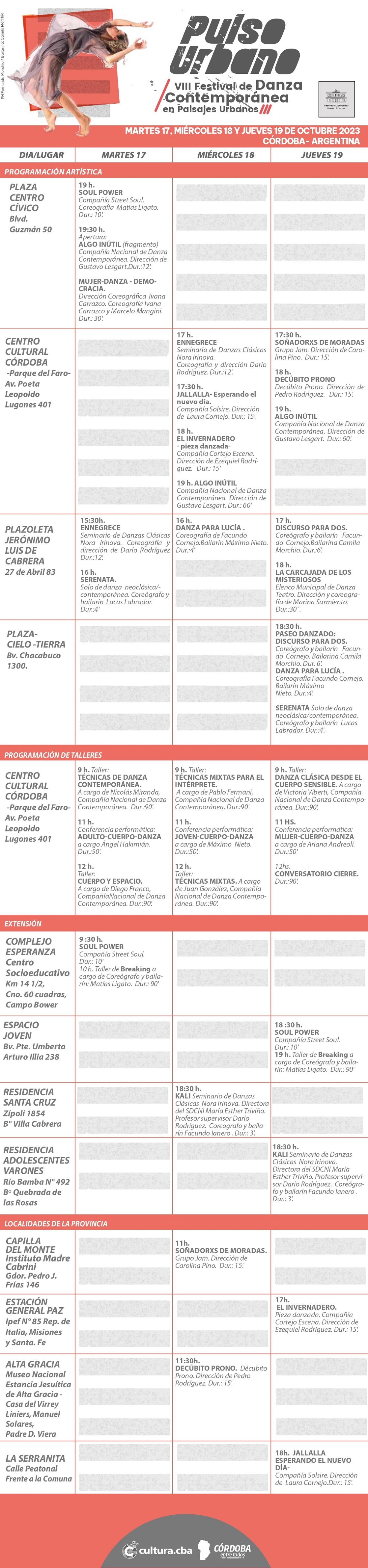 A continuación, la grilla completa del VIII Festival Pulso Urbano.