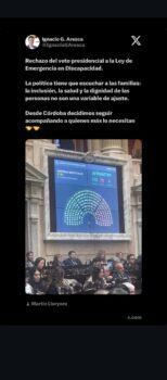 Uno de los principales impulsores del acompañamiento fue el diputado sanfrancisqueño Ignacio García Aresca, quien afirmó en sus redes sociales: «La política tiene que escuchar a las familias: la inclusión, la salud y la dignidad de las personas no son una variable de ajuste. Desde Córdoba decidimos seguir acompañando a quienes más lo necesitan.»