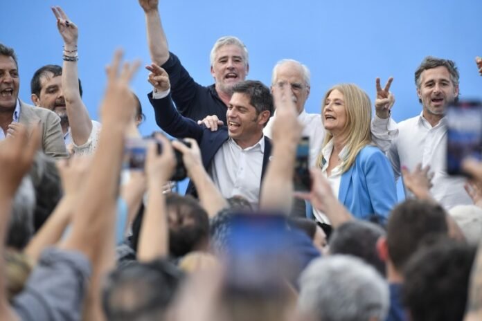 “Con la bicicleta financiera, con el tema cambiario y con la tasa de interés se fumaron en pipa los 35.000 millones del blanqueo y los dólares de la cosecha”, dijo Kicillof. A su lado estaban los candidatos Jorge Taiana, Jimena López y Juan Grabois. También Sergio Massa y Verónica Magario.