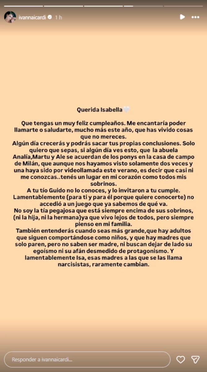 La historia de Instagram la publicó en las últimas horas luego del cumpleaños de la hija menor que su hermano Mauro Icardi tuvo con Wanda Nara.