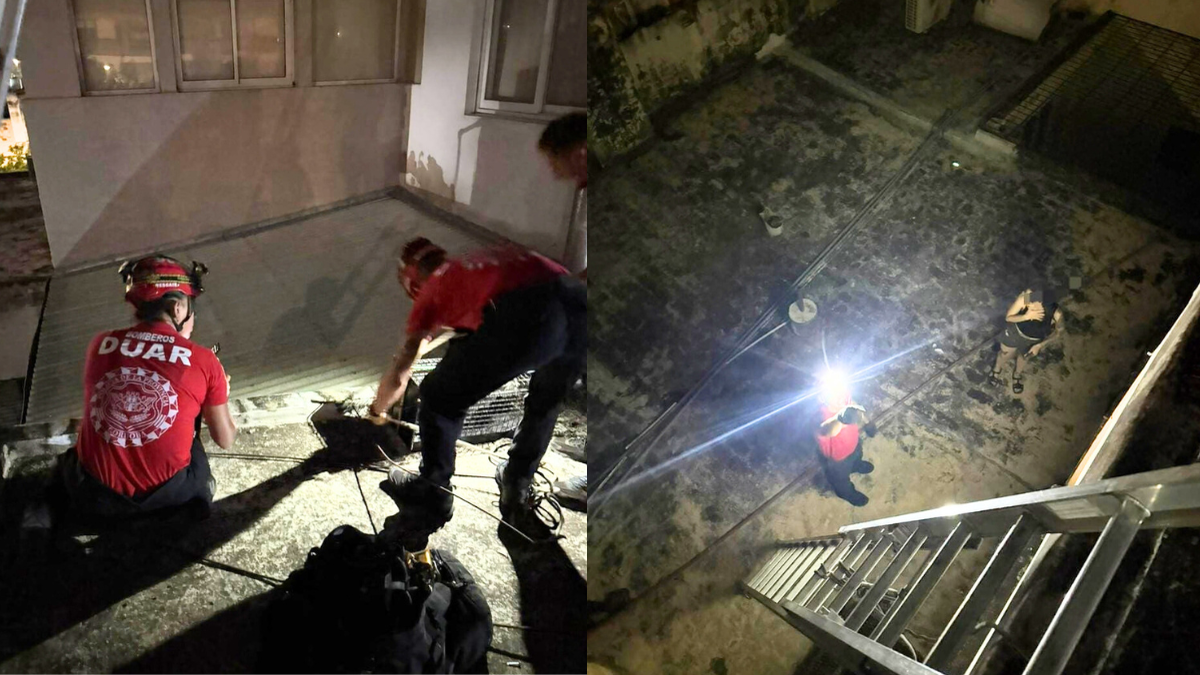 La damnificada de 24 años había descendido dos pisos hasta el techo del edificio con la intención de rescatar a un gato, pero al no lograr regresar por sus propios medios solicitó auxilio.