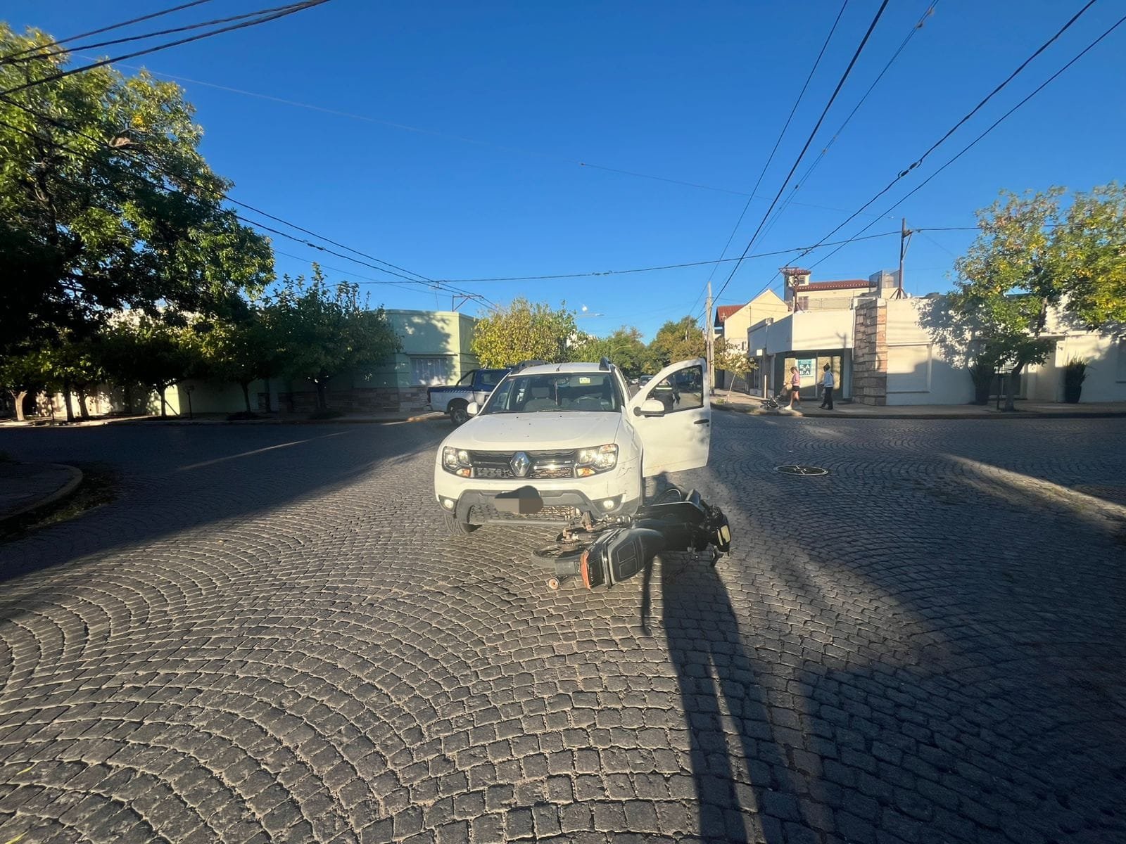 En horas de la tarde del 24 de marzo, personal del C.A.P. intervino en un accidente de tránsito en barrio Sarmiento, protagonizado por una Renault Duster conducida por una mujer de 83 años y una Yamaha Crypton 110 manejada por una joven de 28 años, quien iba acompañada por su hija de 4 años.