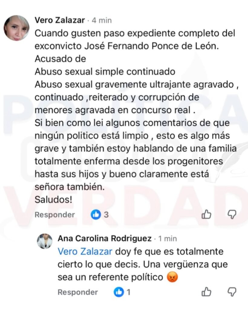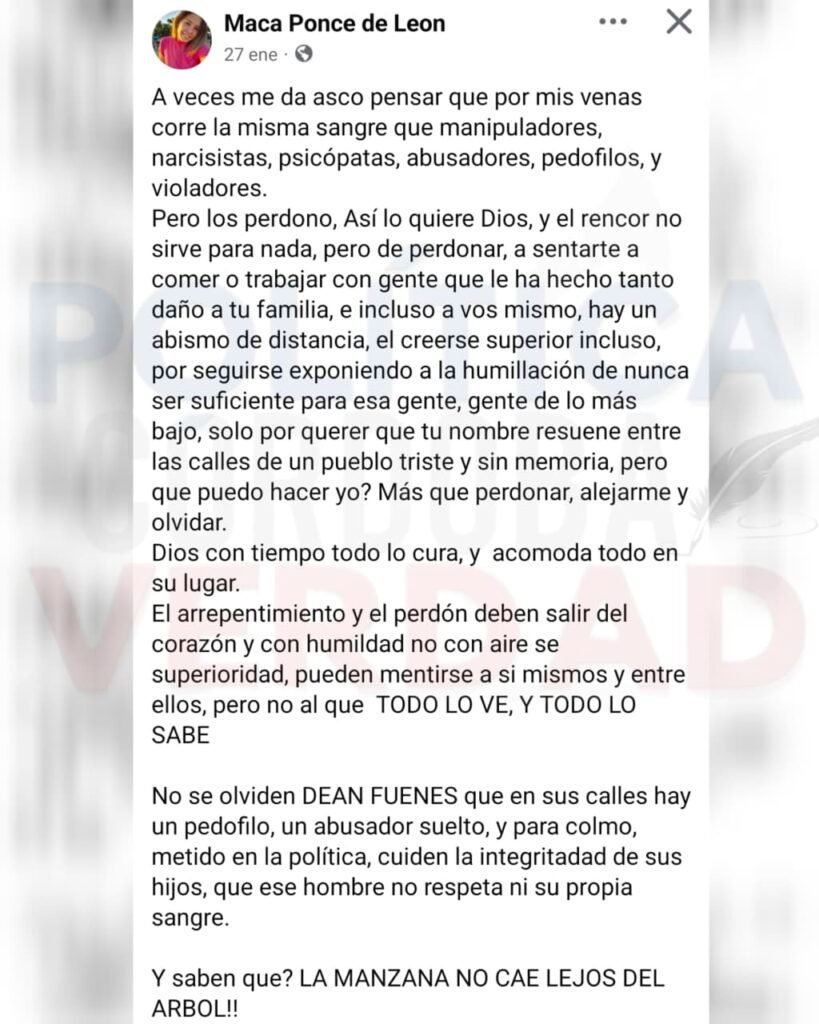 Ponce De León, junto a su esposa Paula Blanco son los referentes de LLA en Dean funes e Ischilín y aunque el condenado haya dicho que no pertenece a ningún partido, basta con bucear un poco sus redes para ver a donde está encolumnado.