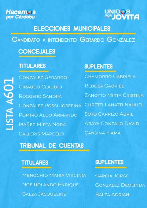 Unidos por Jovita presentó su lista para enfrentar al oficialismo en las elecciones Municipales del 4 de Junio; el candidato a Intendente será el médico veterinario Gerardo González que estará acompañado en la lista de concejales por Claudio Giraudo y Sandra Roggero en segundo y tercer lugar.