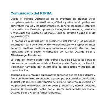 Un duro comunicado del Partido Justicialista bonaerense, que conduce Máximo Kirchner, ataca con rudeza a Alberto Fernández, titular del PJ nacional, y al embajador en Brasil, Daniel Scioli, precandidato a presidente auspiciado por la Casa Rosada, aclarando que aceptó su propuesta para el establecimiento de los pisos electorales que regirán el proceso de confección de las listas que presentará la coalición peronista (ahora, Unión por la Patria) en las elecciones de octubre.